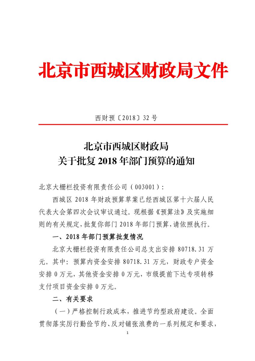 北京大柵欄投資有限責(zé)任公司2018年財(cái)政部門預(yù)算